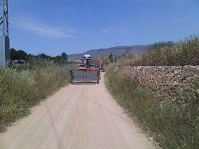 Habia trafico en la pista. La verdad que con las lluvias y el "solecito" han crecido verdaderas selvas amazónicas en los bancales, como será la cosa que en lugar de labrar, pasan las "segadoras" para poder ver la tierra que hay debajo,