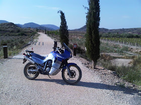 La ruta ha transcurrido entre la Playa de San Juan y Caudete, la ida por caminos y carreteras comarcales y la vuelta por autovía. He tardado toda la mañana, ya que al Garmin le entro la manía de no coger la ruta que le pase desde el Mapsource, por lo que he tenido que ir leyendo los cruces desde la Blackberry con Google Maps y la capa de la ruta (subida a mis mapas).