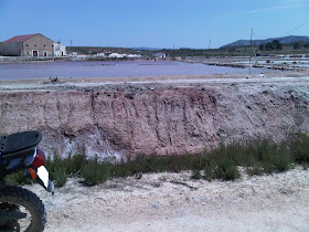 Cuando parecía que todo sería monotonía "mesetera", me encuentro con 2 salinas algo lejos del mar "salado", no se de donde sacan el agua, pero sal si sale,
